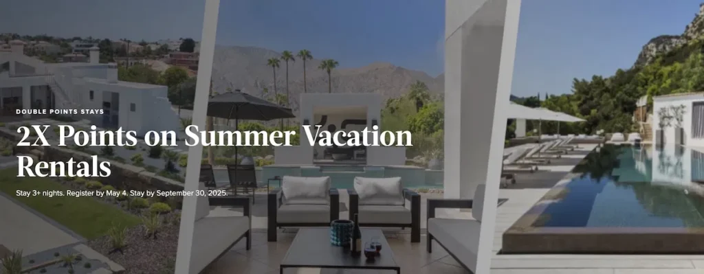With this promotion, you can earn 2X points unlimited times. Bonus points will be credited within 72 hours of completing an eligible stay. This is a good bonus offered through Homes & Villas.